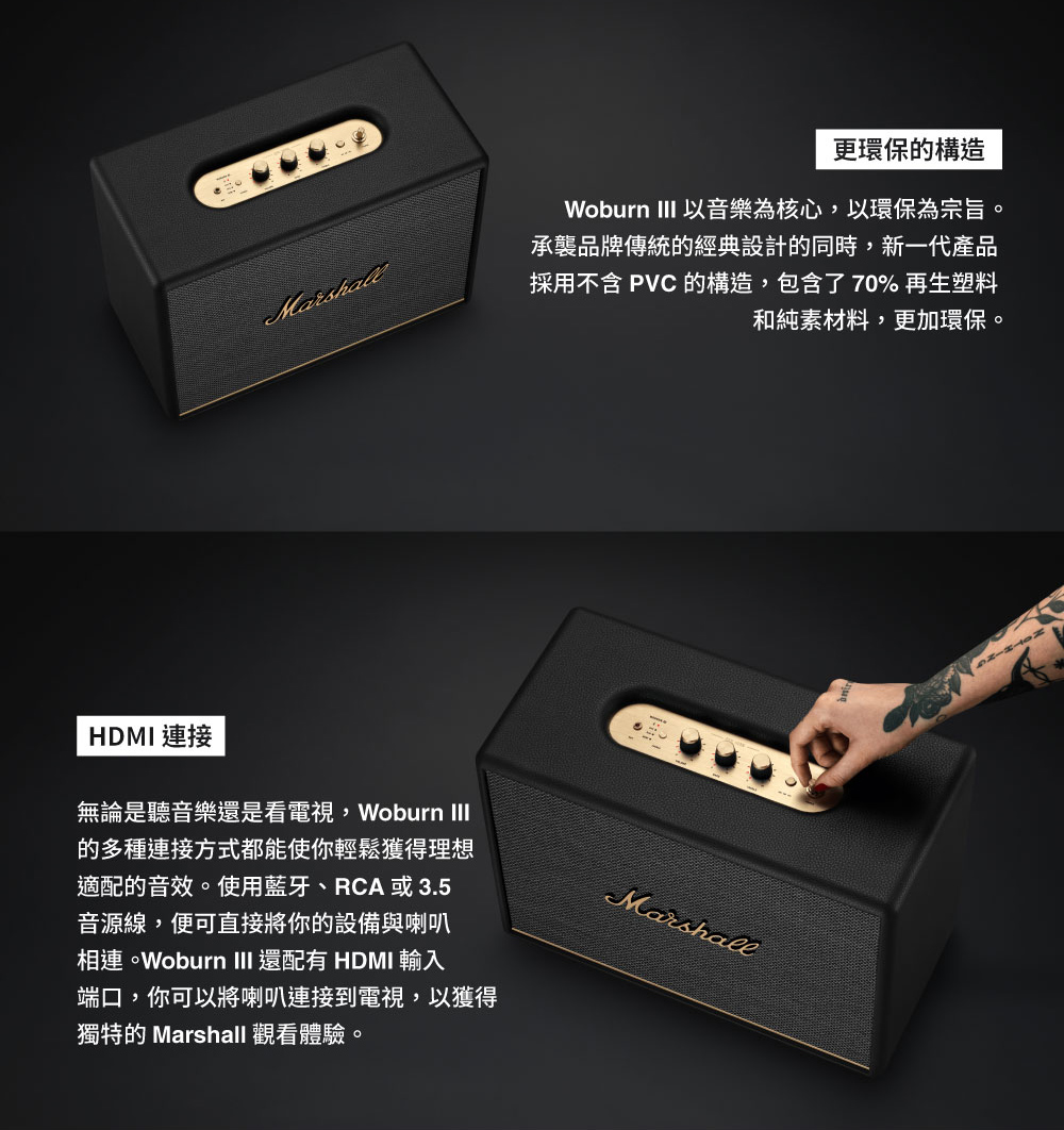 【Marshall】Woburn III 立體聲藍牙喇叭(公司貨一年保固)