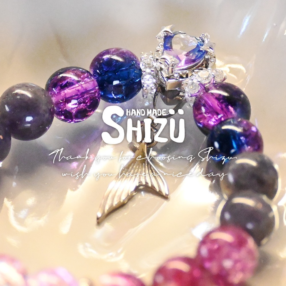 選用:堇青石、紫粉漸變愛心S925純銀、銀飾配件均為S925純銀、漸變爆晶(多色)