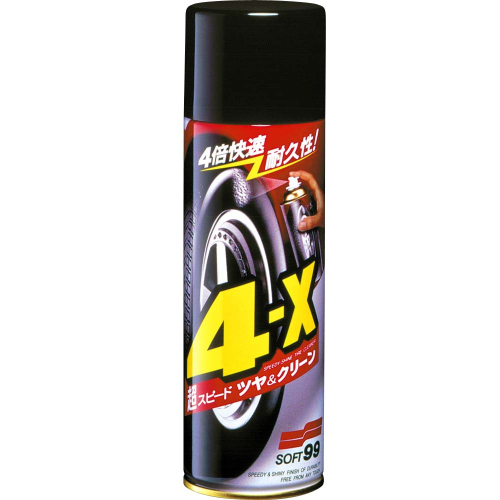 特色:4-X是新式快速清潔輪胎噴臘,直接噴灑在輪胎上,立刻產生發泡作用,自動地洗淨嚴重污垢,馬上呈現美麗光彩,形成一層保護膜,阻隔陽光中紫外線,預防污垢附著輪胎上,避免輪胎退色、劣化。