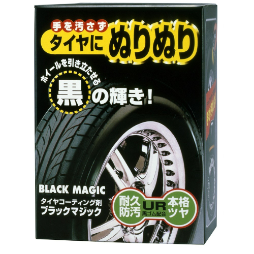 特色:使用方便簡單的超耐久輪胎黑色覆膜劑,特殊的UR水性膠狀覆膜,能顯現出輪胎高雅色澤,強固的覆膜可防止紫外線、臭氧、酸雨、廢氣對輪胎的侵蝕,並防止輪胎的變色,常保輪胎如新,反覆多層塗抹可形成更堅實的覆膜。1瓶約可塗抹60至80個輪胎。