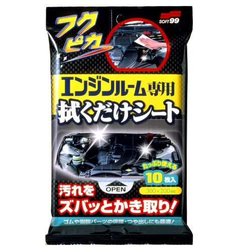 特色:只需擦拭即可清除污垢的特殊濕巾。徹底吸去引擎室機箱上的灰塵和油污。不會像噴射型四處飛濺,只需從袋中取出擦拭。隨時隨地都可使用。樹脂零件、橡膠製軟管、硬管使用後,可在表面形成保護膜。無需用水,以及擔心電子零件短路和斷裂等。也不用進行煩人的防水措施。