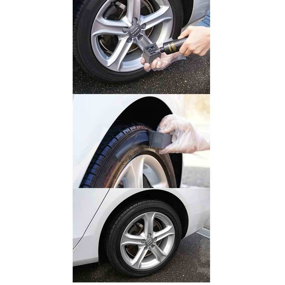 3.水性的輪胎蠟成分,不含石油類溶劑,施工後不黏膩,防止沙等髒汙再沾黏。