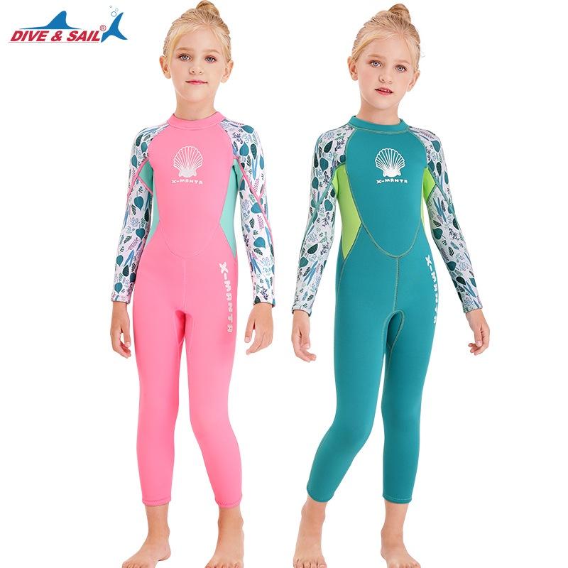 北極熊戶外用品 兒童潛水服 女2.5mm連體泳衣 DIVE&SAIL 保暖長袖 防晒浮潛衝浪水母衣 防寒衣潛水
