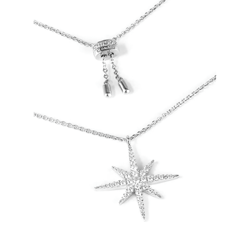 這款項鍊採用純銀手工製成,微鑲了白色氧化鋯石。