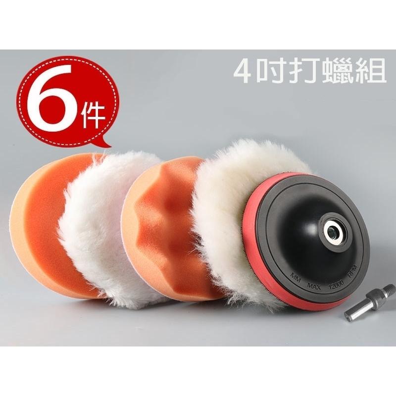 六件打蠟組 四吋 4吋 電鑽打蠟機好搭檔 海綿 羊毛 魔鬼氈 三角轉接頭 打蠟海綿 打臘