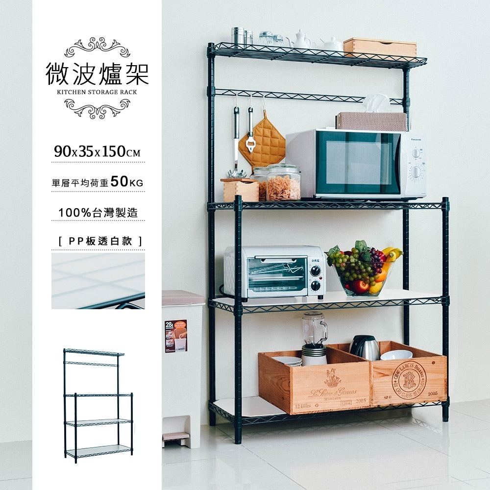 【dayneeds】輕型 90x35x150公分 烤漆微波爐架 兩色可選 (含霧白PP墊板)
