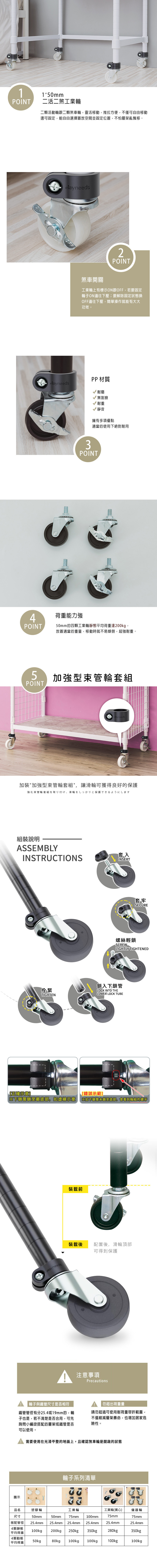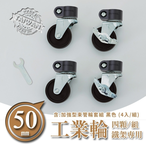 【dayneeds】50mm鐵板工業輪含加強型束管輪套組(2活2煞) 兩色可選