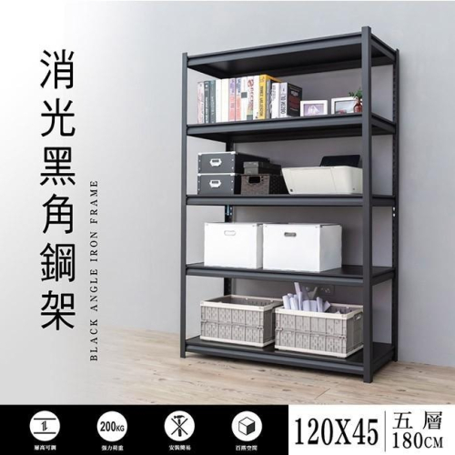 【dayneeds】120x45x180公分 五層消光黑角鋼架
