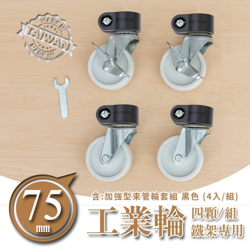 【dayneeds】75mm鐵板工業輪含加強型束管輪套組(2活2煞) 兩色可選