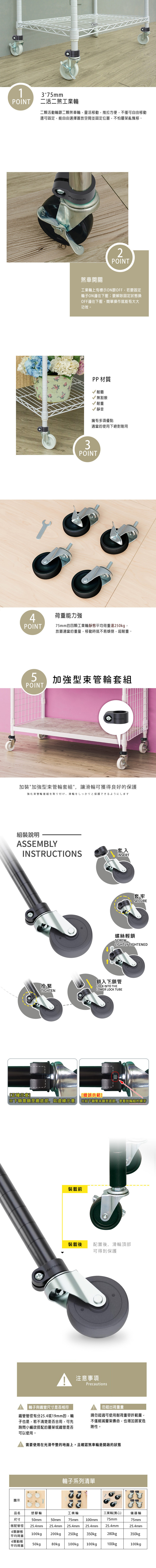 • 75mm的四顆工業輪靜態平均荷重達250公斤