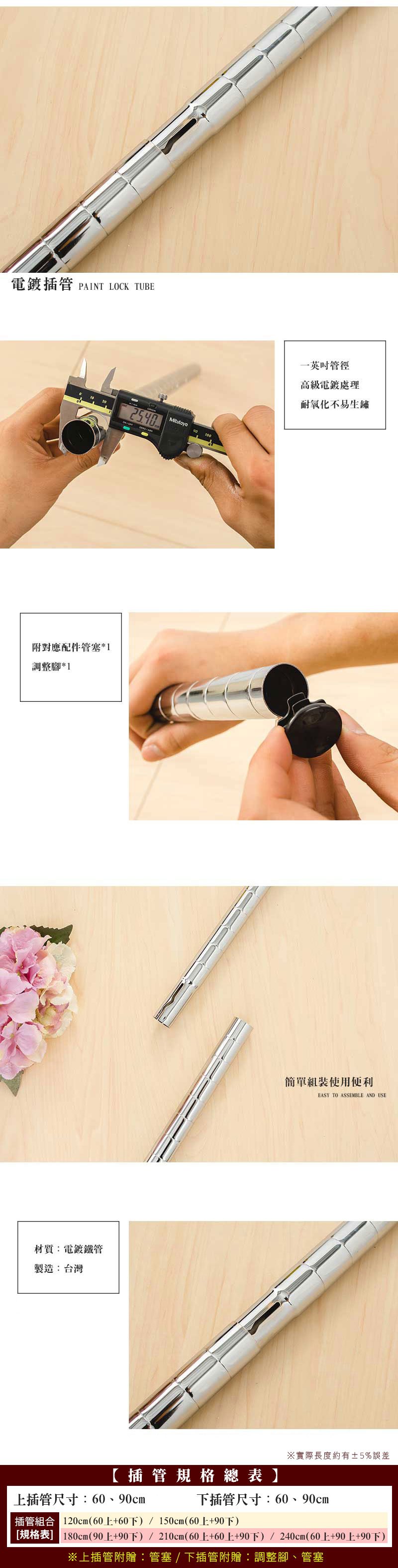 【dayneeds】電鍍一吋插管系列120cm 150cm 180cm 210cm 240cm 眾多尺寸可選