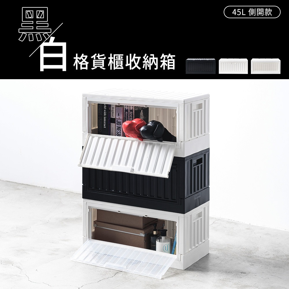 【dayneeds】黑白格貨櫃收納箱 45L側開款 三款可選
