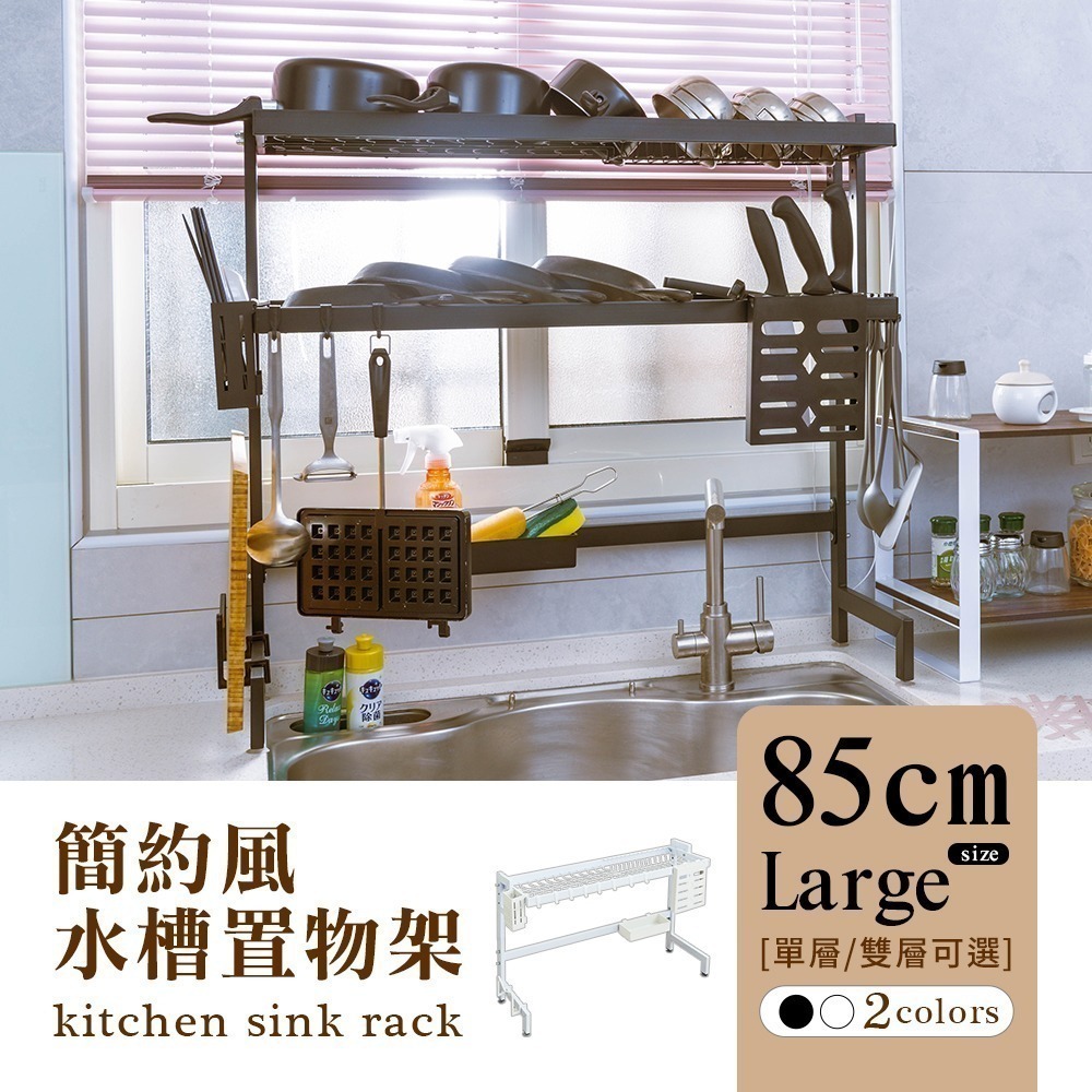 【dayneeds】[簡約風]廚房水槽架-85CM大款(兩色/單雙層可選)