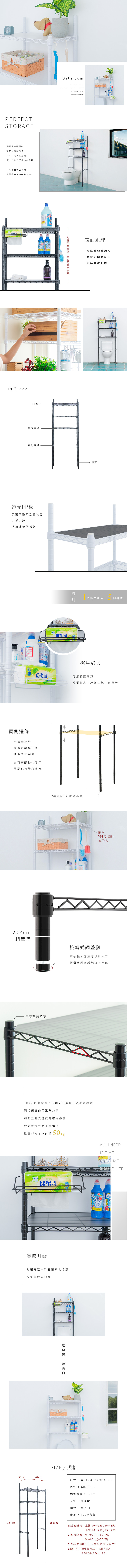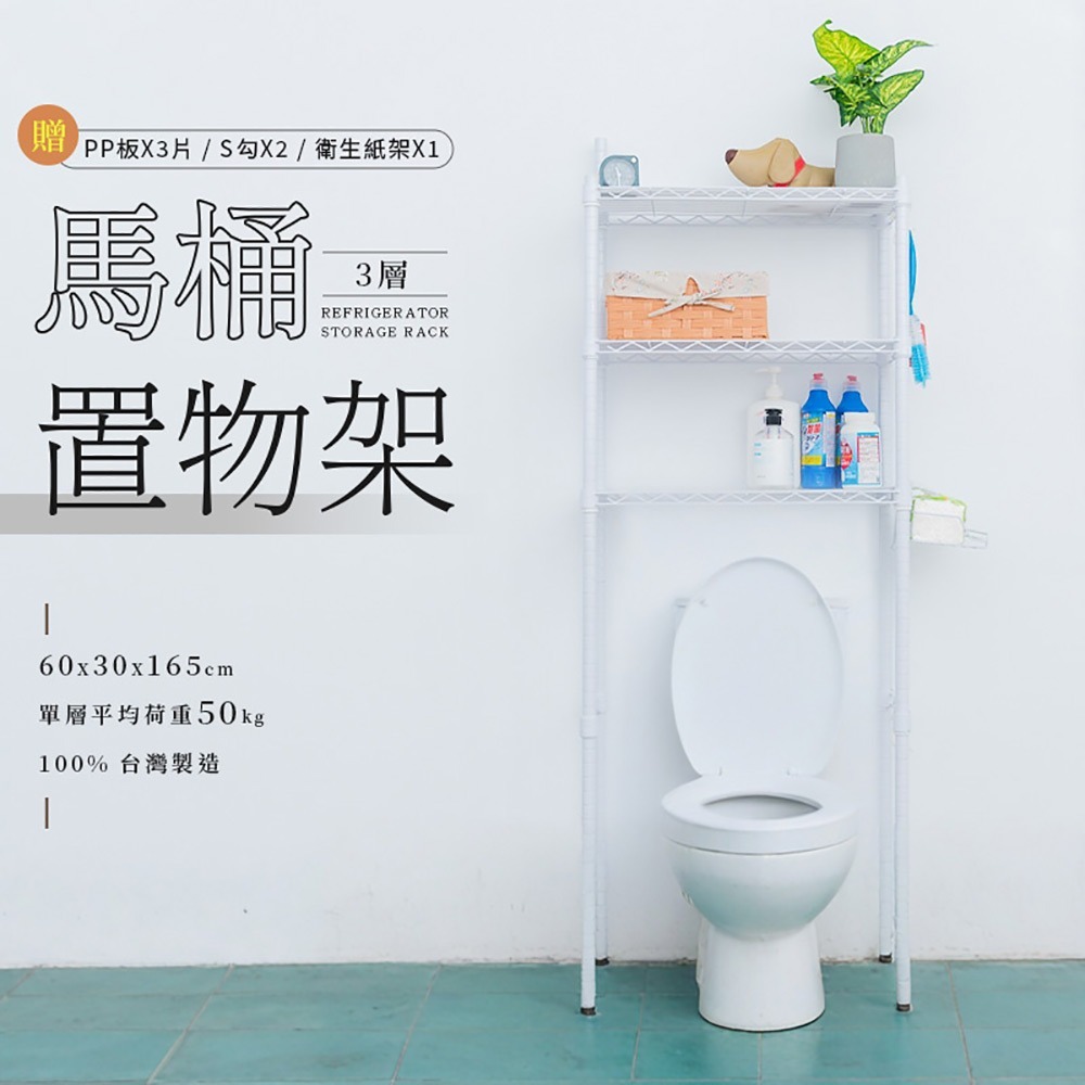 【dayneeds】輕型 60x30x165公分 馬桶置物架 (含衛生紙架+S掛勾+PP板) 兩色可選