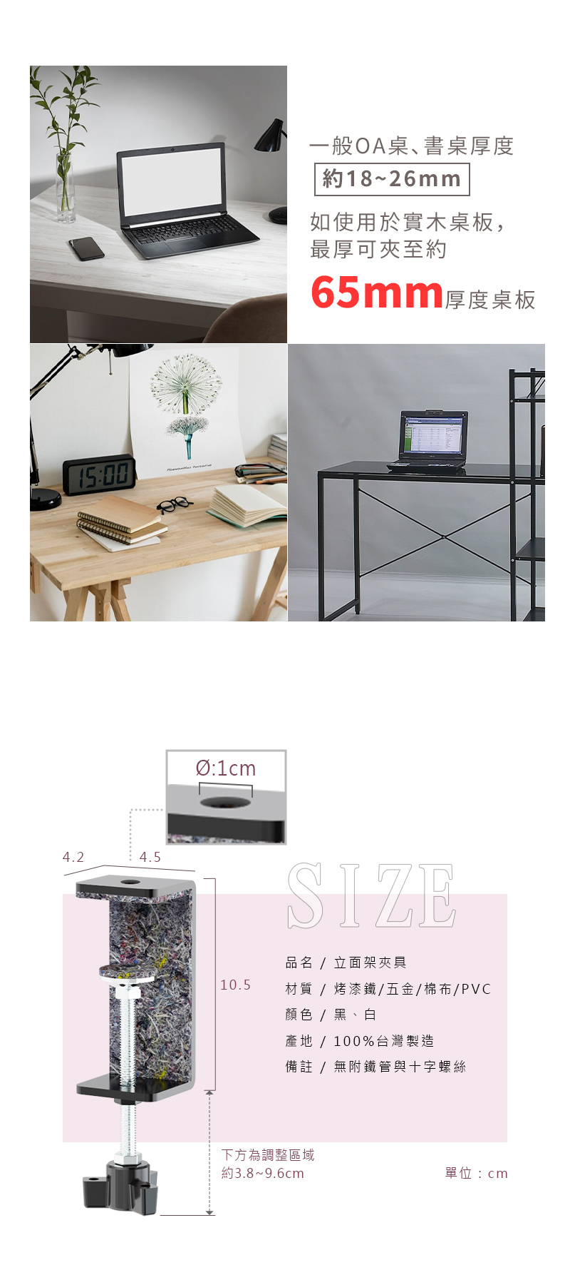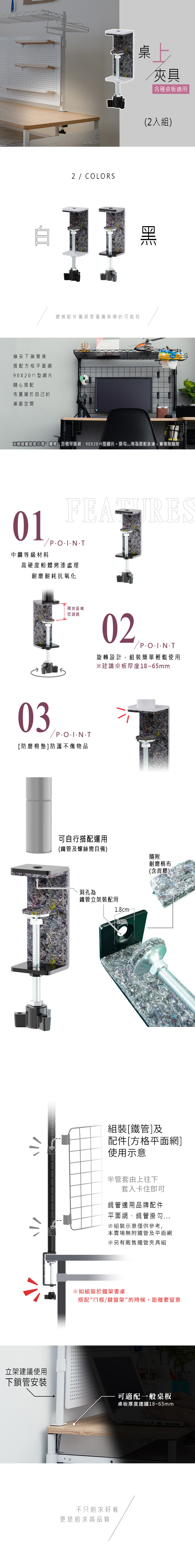 【dayneeds】桌上立面[夾具]_2入/組 兩色可選 適用桌板厚度18mm-65mm