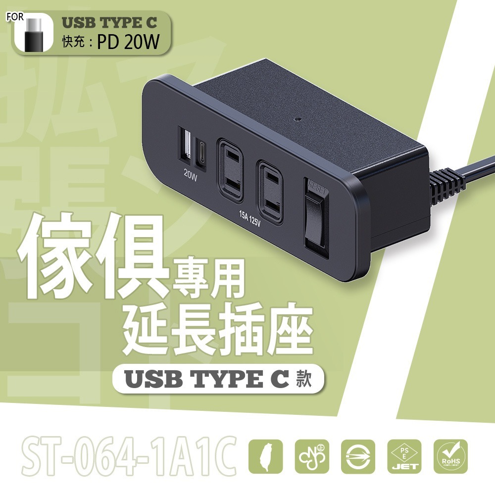 【dayneeds】ST-064-1A1C 傢俱專用延長插座 USB Type-C款