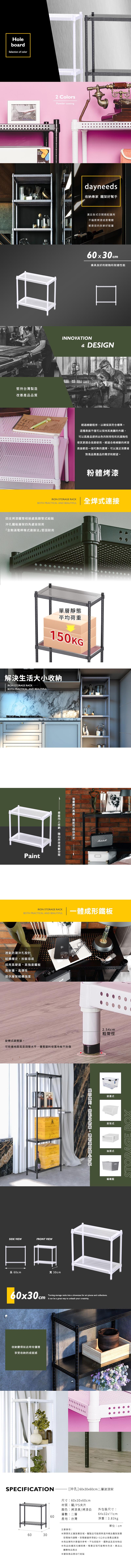 【dayneeds】沖孔 60x30x60公分 二層烤漆架 兩色可選