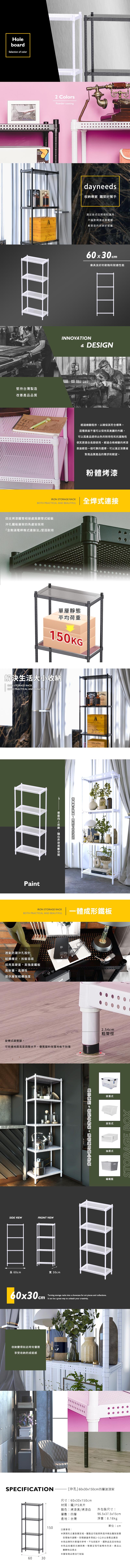 【dayneeds】沖孔 60x30x150公分 四層烤漆架 兩色可選
