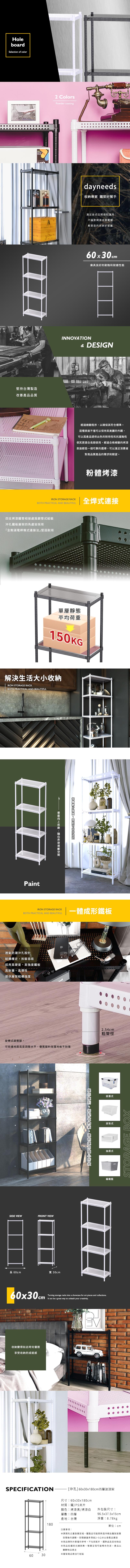 【dayneeds】沖孔 60x30x180公分 四層烤漆架 兩色可選