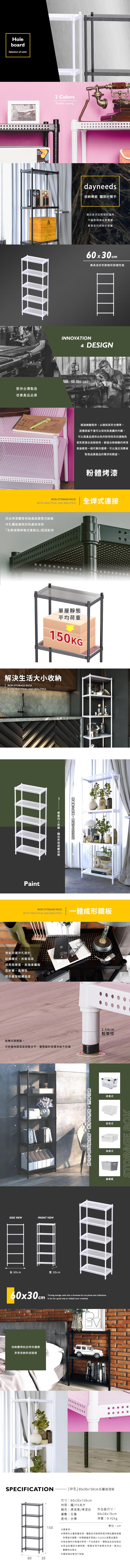 【dayneeds】沖孔 60x30x150公分 五層烤漆架 兩色可選
