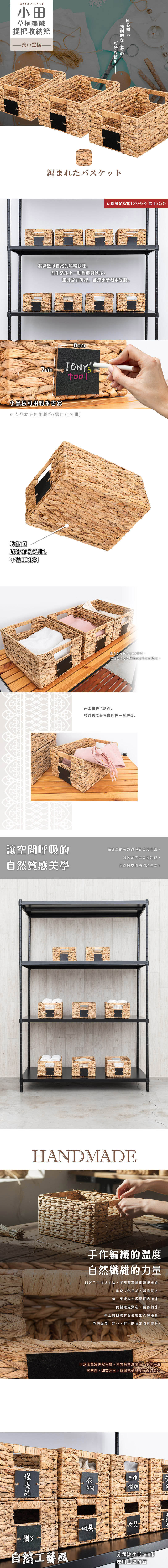 【dayneeds】小田 草植編織-提把收納籃(含小黑板) 3入組