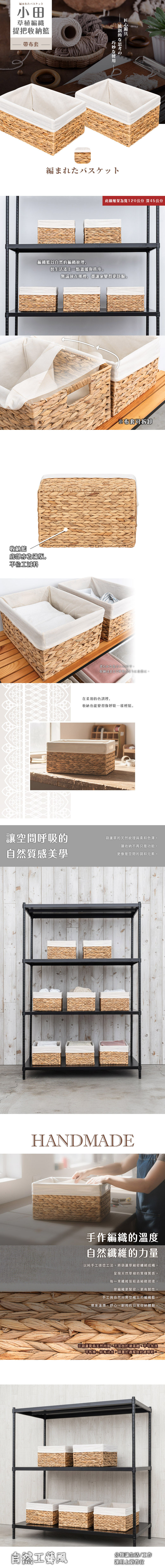 【dayneeds】小田 草植編織-提把收納籃(含布套) 4入組