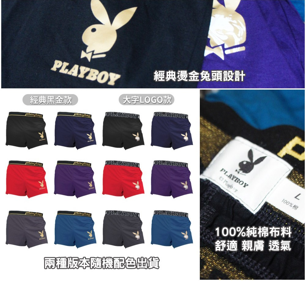 【PLAYBOY】暢銷熱賣燙金兔頭舒適四角褲(超值4件組)