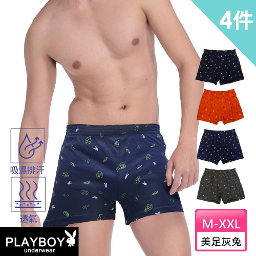 【PLAYBOY】美足小兔印花透氣針織四角褲(超值4件組)