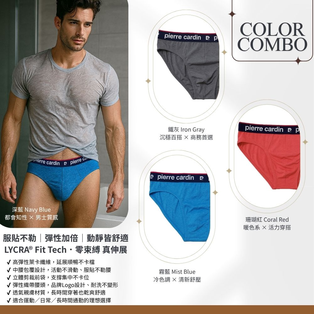 【pierre cardin 皮爾卡登】柔感萊卡速乾舒適三角褲(超值6件組)
