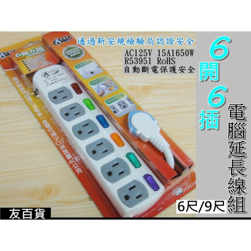 6保證:●過載保護、自動斷電 ●獨立迴路附燈開關 ●安全絕緣電線 ●插座防火PC材質 ●超低阻抗、高功率 ●彩色燈罩可分類電器