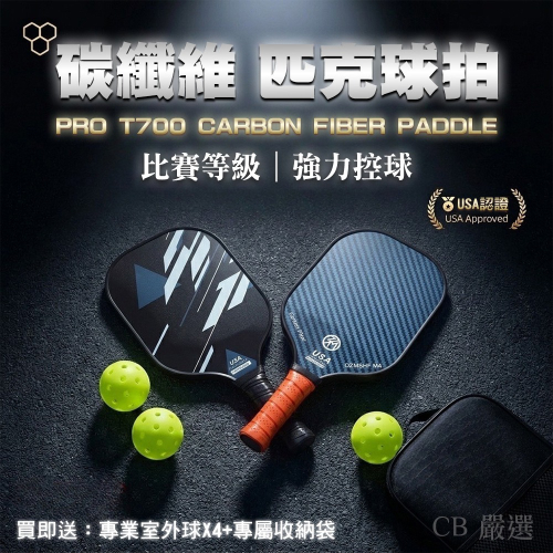 套裝組=碳纖維比賽級匹克球拍*2、匹克球*4、收納包*1