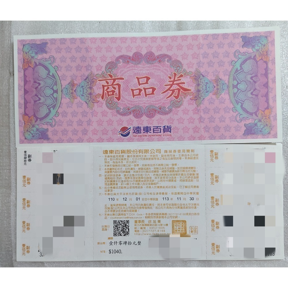 遠百商品券 1040面額 愛買 大遠百 遠東sogo可用 禮券