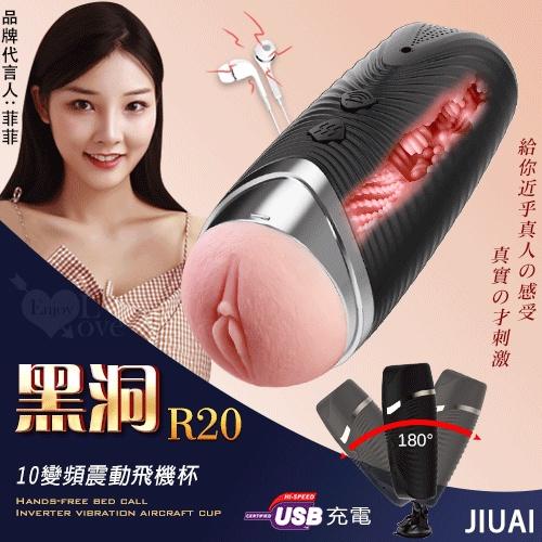 【送270ml潤滑液】JIUAI 黑洞R20 ‧ 免提叫床USB充電式10變頻震動飛機杯﹝呻吟發音+配耳機+專屬吸盤﹞