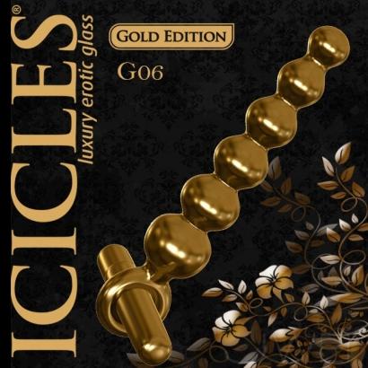 【送270ml潤滑液】美國進口PIPEDREAM.ICICLES冰晶玻璃奢華金系列-震動後庭拉珠棒-G06