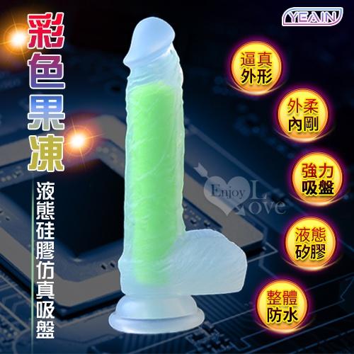 【送270ml潤滑液】YEAIN夜樱 ‧ 彩色果凍液態硅膠仿真老二吸盤棒 - 單色綠