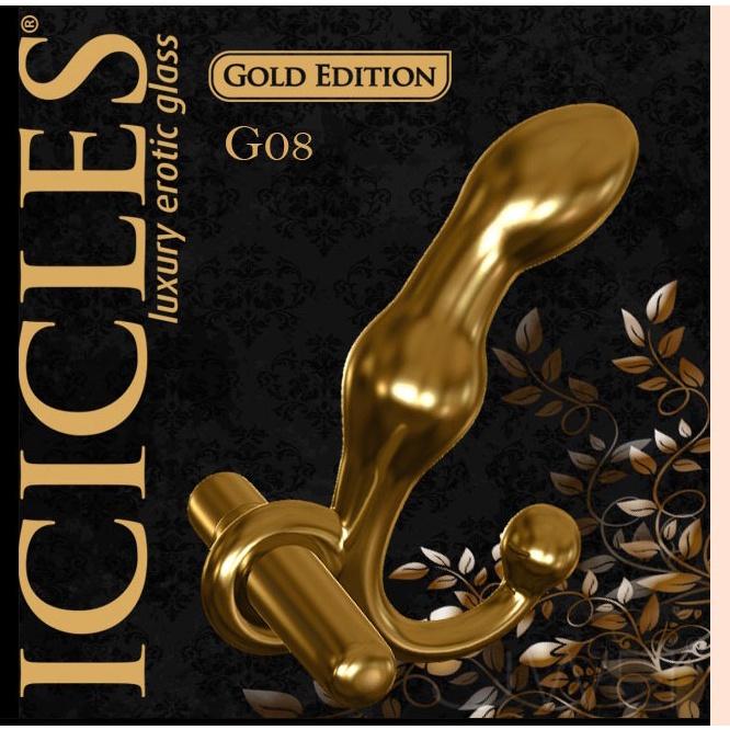 美國進口PIPEDREAM.ICICLES冰晶玻璃奢華金系列-前列腺G點震動按摩棒-G08