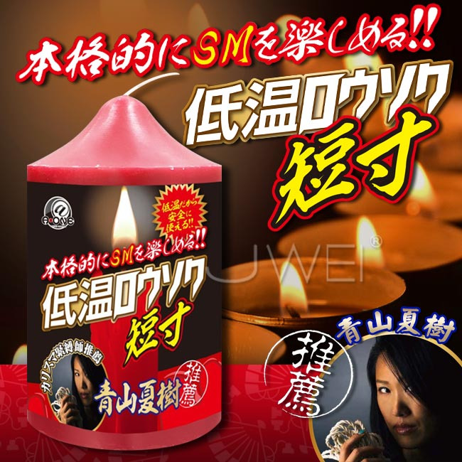 低温タイプの安心して使えるSM用ローソクです。太さ5cmとしっかりと太さがあるので持ちやすく、血飛沫のような少し濁った赤色の蝋燭だから、よりマニアックな空気感を楽しめます。また、低温とはいえ、体温よりは高く「熱い」と感じるので、見ている方も蝋を垂らされている方も楽しめます。ご存じない方もいらっしゃるとは思いますが、カリスマ緊縛師「青山夏樹」も推薦するこのローソクは、初めてロウソクを使う方も安心して使えて、マニアックな雰囲気が楽しめると好評なアイテム。 お手頃サイズの短寸タイプなので、これからSMプレイを始めてみたいという初心者の方のお試し用としても最適☆