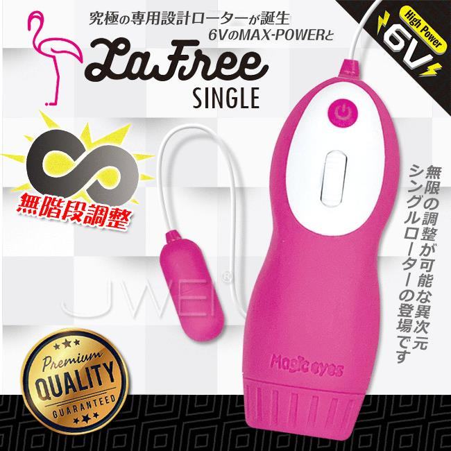 驚異的な6Vのマックスパワーと、無段階ダイヤルと10種類のバイブレーションパターンが備わった、無限の調整が可能な異次元シングルローターの登場です。 この「ラ.フリーシリーズ」は、女性がひとりで取り扱いしやすいコンパクト設計で、コーティングされている素材表面もサラサラで心地良い滑らかさ。 マット加工のローターは使用感抜群で、本体のスイッチは電源と振動強弱スライドの2種類のみと、簡単に使えます。初めてローターを手にする人も直感的に操作が可能になります。 静音性に優れ、ローター部は生活防水仕様なので、使用後のお手入れも簡単です。 微細震動から強烈振動まで、お好みに合わせてお楽しみ下さい。