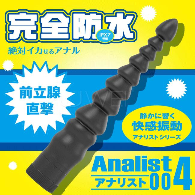 徐々にサイズが大きくなる三角形の8連タイプ!初心者~上級者まで愛用の人気アナルバイブが、待望の完全防水化!(IPX7)すぐに使える乾電池式の人気アナルバイブが、オールラウンドで楽しめる完全防水になりました。プレイの幅が広がると同時に、お手入れがさらに簡単になったことで、清潔感もアップ。緻密に考え抜かれた10種類のラインナップで、あらゆる前立腺ニーズにお応えします。004は、徐々にサイズが大きくなっていく三角形の8連タイプ。 中を傷めないように、ゆるやかに作られたカドが、内壁をたっぷり刺激。スムースに入った分だけ、抜くときの引っかかりがヤミツキになります。フレキシブルアームで自分好みの角度に挿入可能。