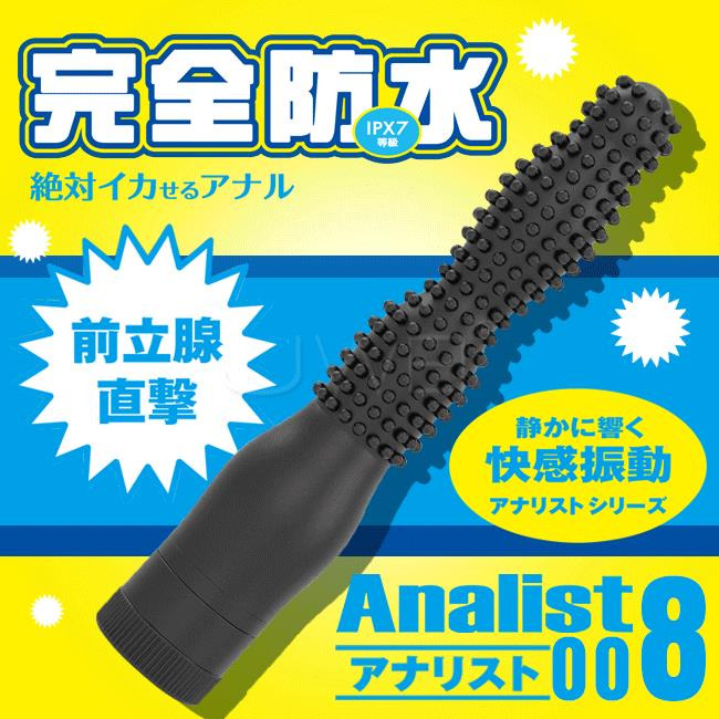 弾力ある無数のつぶつぶが、内部をコスりあげる!初心者~上級者まで愛用の人気アナルバイブが、待望の完全防水化!(IPX7)すぐに使える乾電池式の人気アナルバイブが、オールラウンドで楽しめる完全防水になりました。プレイの幅が広がると同時に、お手入れがさらに簡単になったことで、清潔感もアップ。緻密に考え抜かれた10種類のラインナップで、あらゆる前立腺ニーズにお応えします。008は、弾力ある無数のつぶつぶが、あなたの内部をしっかりコスりあげます。絶妙なふくらみが、前立腺を刺激!フレキシブルアーム採用で自由な角度に曲げて楽しめます。