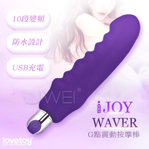 i Joy Waver G點按摩棒擁有柔軟親膚材質製成,插入時舒適不傷肌,且採7層波浪紋設計層層摩擦G點,使快感層層堆疊,達到極致高潮使愛如潮水般一發不可收拾喔~而10段變頻模式搭配一鍵操控,用最簡單的方式輕鬆達到多種快感體驗。採USB充電模式讓您一次愛個夠不怕中途沒電~並且擁有防水設計讓您盡情享受魚水之歡更方便清洗喔~