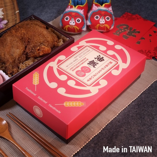 本包裝盒專為傳統手藝油飯設計製作,需自行摺盒組裝,讓您吃得安心,用得放心。