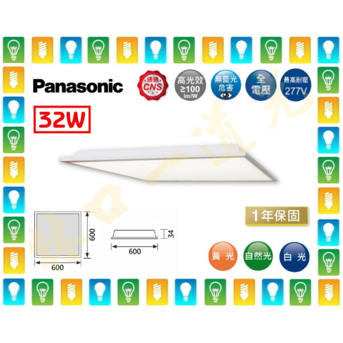 【林口一道光】Panasonic 國際牌 32W LED 平板燈 2尺*2尺 輕鋼架燈 T-BAR燈 宅配免運