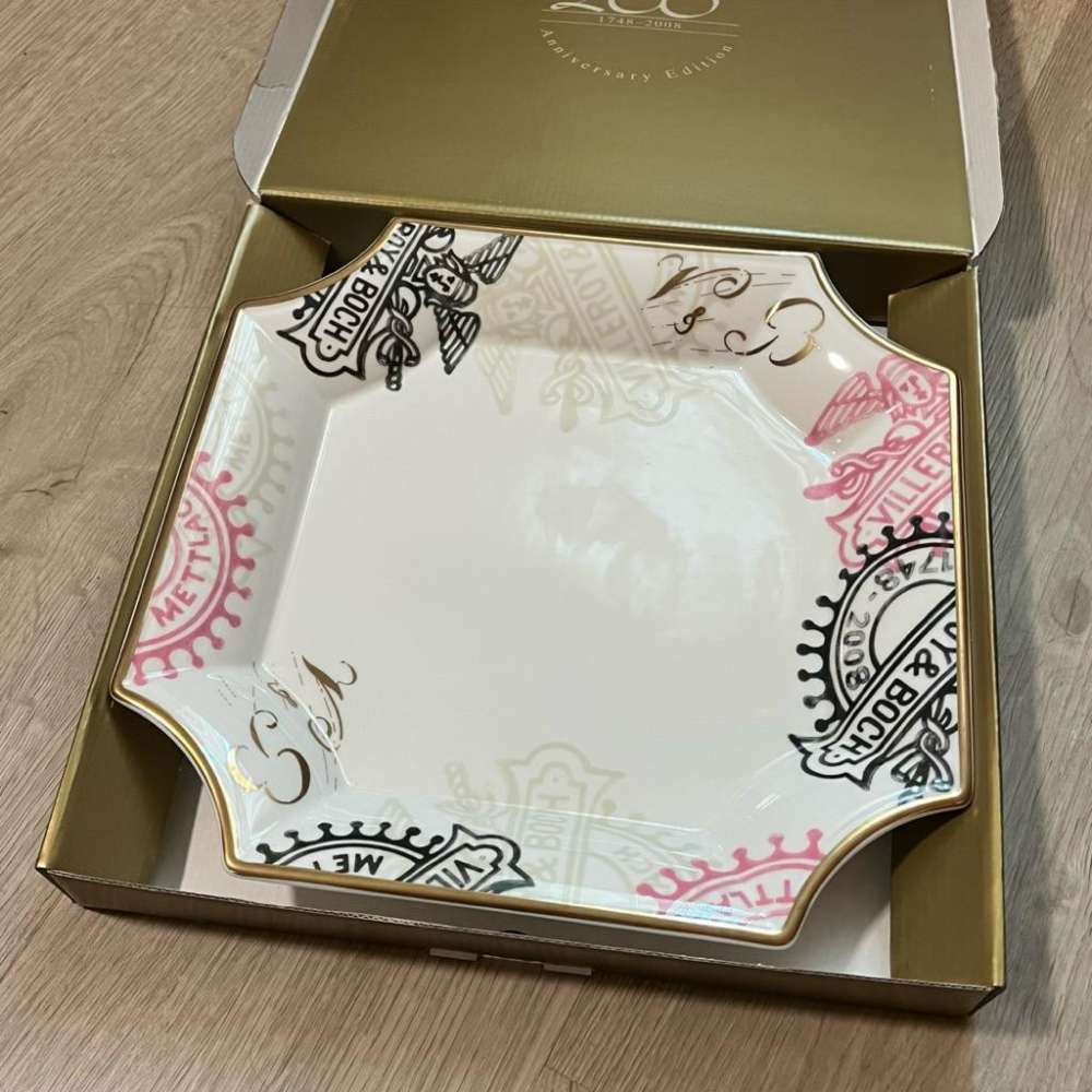 Villeroy & Boch 260週年 限量版盤子 全新未使用過 【Villeroy & Boch 260週年限定 Anniversary Edition 紀念盤】 尺寸約為 32cm x 32cm 全新 沒有刮痕或污漬,保存極佳的物品 偏大的尺寸相當實用 Villeroy & Boch 的品牌標誌、周圍的鑲金裝飾 以及粉嫩的色調都非常耐看 因為是易碎品,寄出時一定會小心仔細地妥善包裝