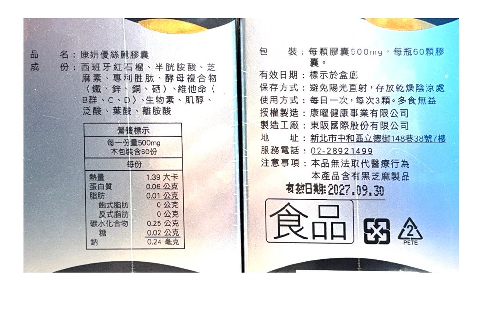 產品名稱 : 康妍優思麗膠囊(60粒/瓶)