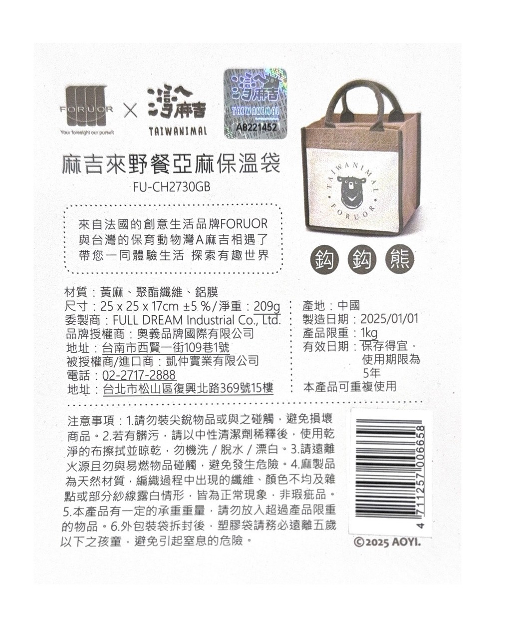 • 麻吉來野餐亞麻保溫袋 麻吉來野餐亞麻保溫袋
