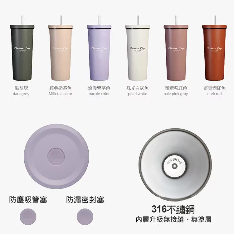 獨家杯蓋(防塵吸管塞+防漏密封塞),細吸管×粗吸管×開蓋直飲3種飲用模式設計,800ml大容量方便飲用,冰塊容易放入,咖啡、大杯手搖飲也沒問題,符合SGS檢驗合格使用安心,瓶身內外採用316不鏽鋼材質堅固耐用,無接縫內膽污垢不易殘留,清洗方便,真空鍍銅技術,保溫保冷效果長效,強力保冰時外殼不冒汗,造型優美時尚,底部止滑設計,不易滑動,不怕刮傷,搭配防漏密封塞,不怕漏水輕鬆帶出門,環保重覆使用,不論在家中、上班、上學、郊遊旅行皆適用,隨時隨地都能享受飲用。