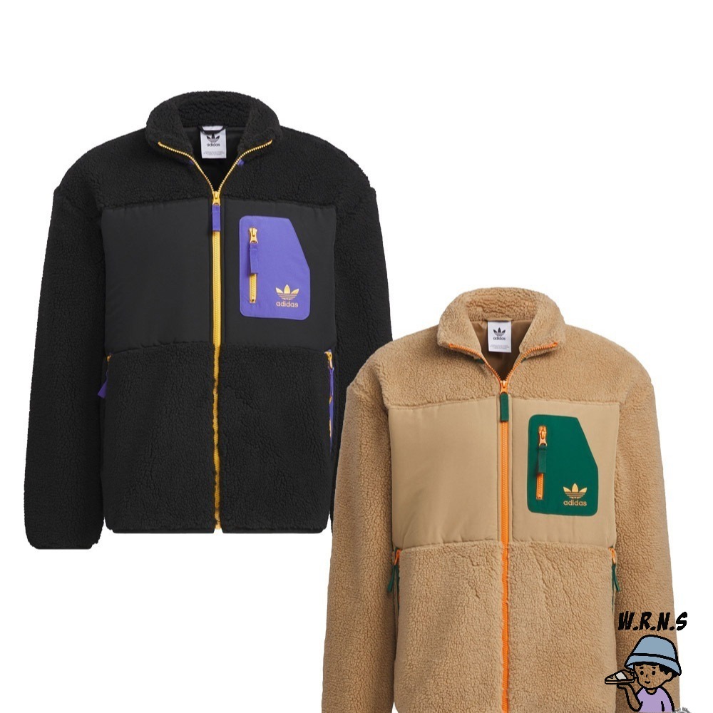 Adidas 男裝 外套 拉鍊口袋 仿羊羔绒 黑/卡其 IN0993/IN0994