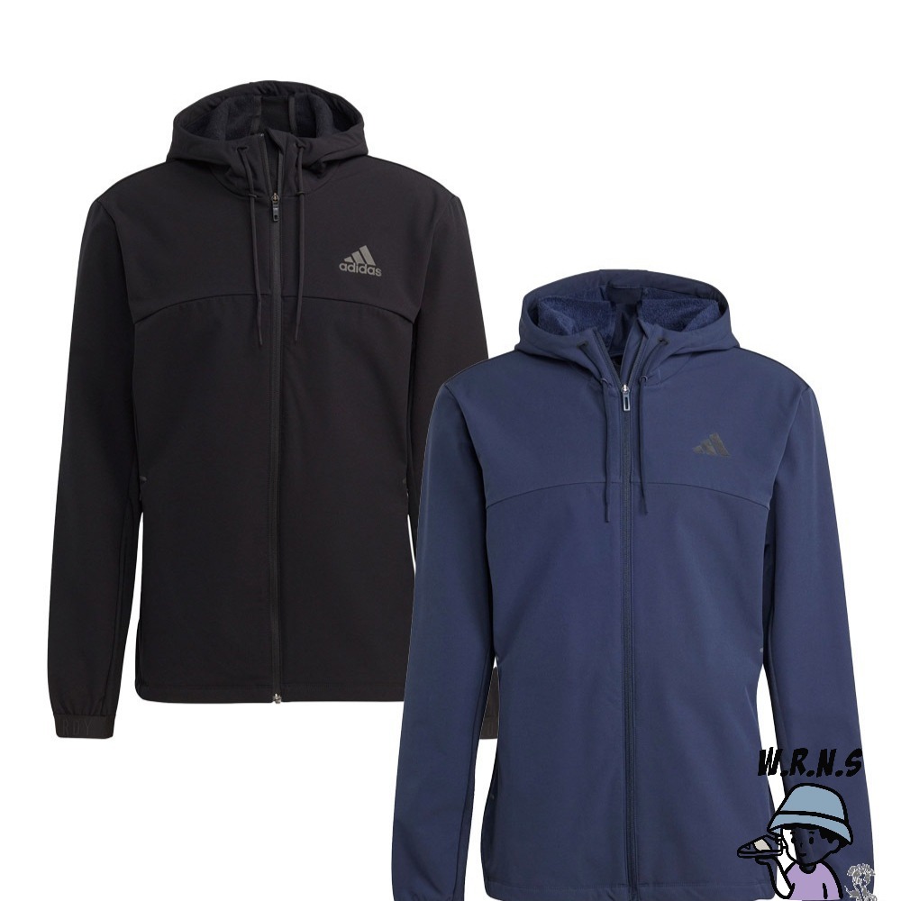 Adidas 男裝 連帽外套 防曬 UPF50+ 拉鍊口袋 黑/藍 HS7494/IL1429