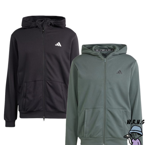 Adidas 男裝 連帽外套 排汗 拉鍊口袋 棉 黑/灰綠IT4308/IT4309